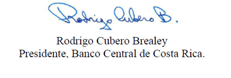 En nombre de la Junta Directiva del Banco Central de Costa Rica, me