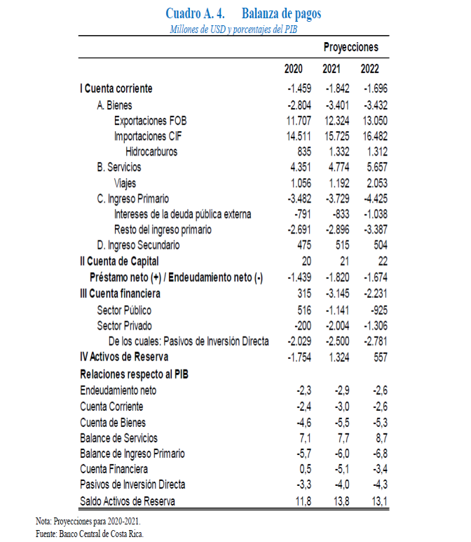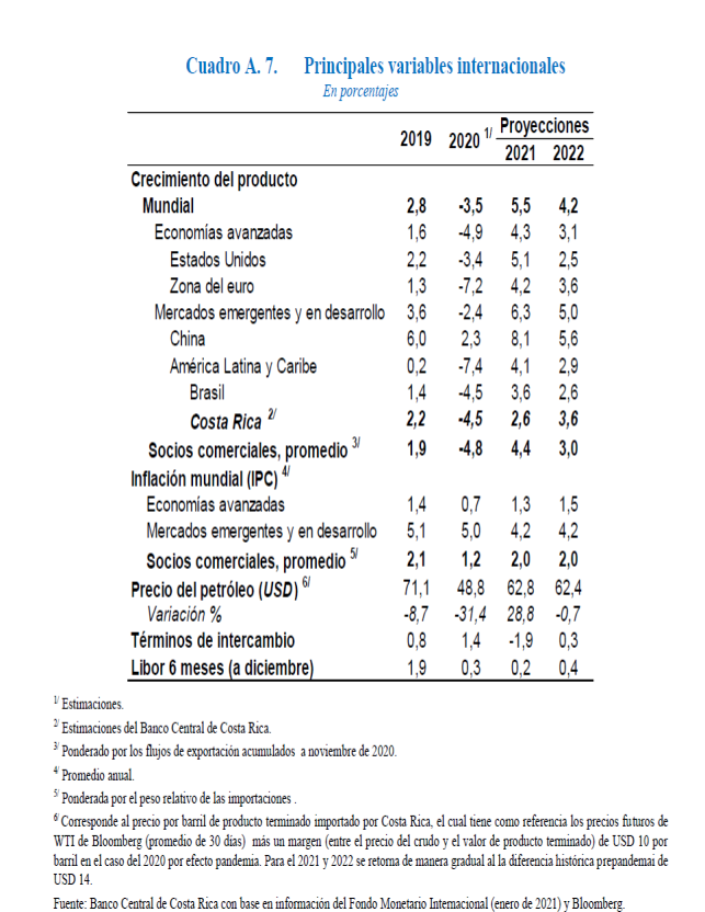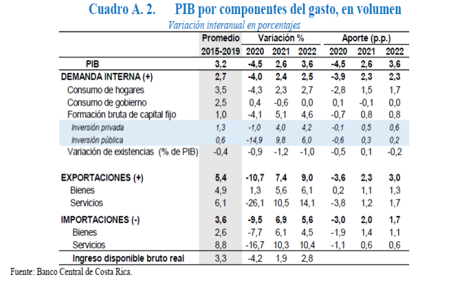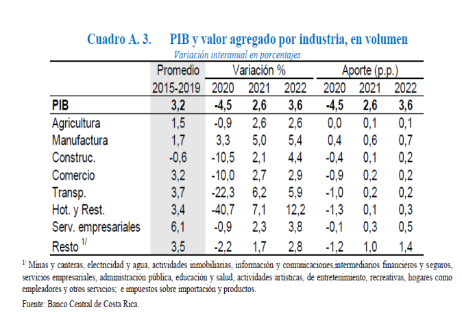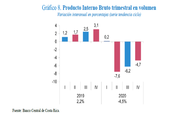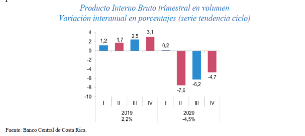 de la economía costarricense ya iniciada en la segunda parte del 2020, en la