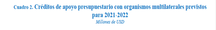 3. Ausencia de créditos multilaterales para apoyo presupuestario. |