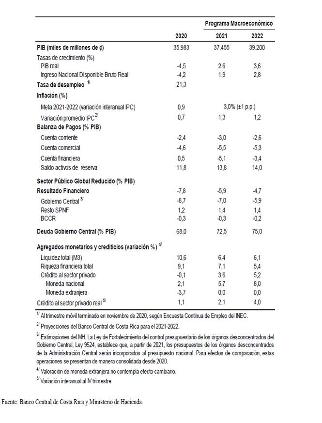 macroeconómico 2020-2021, y publicado en el Alcance Digital N° 17 a La