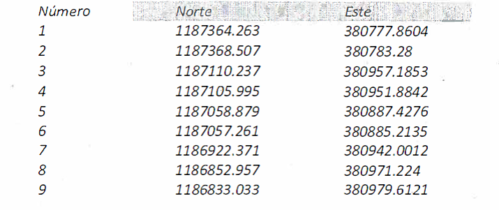 siguientes coordenadas: