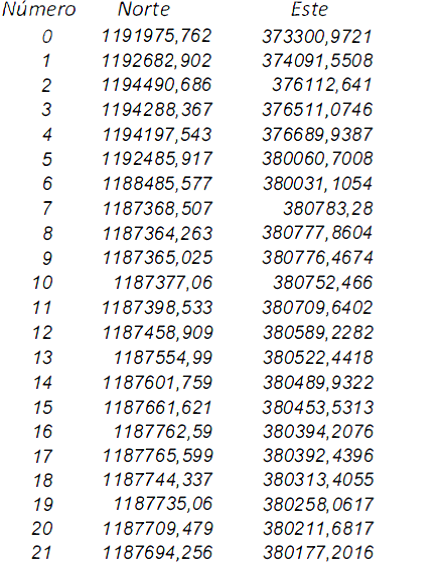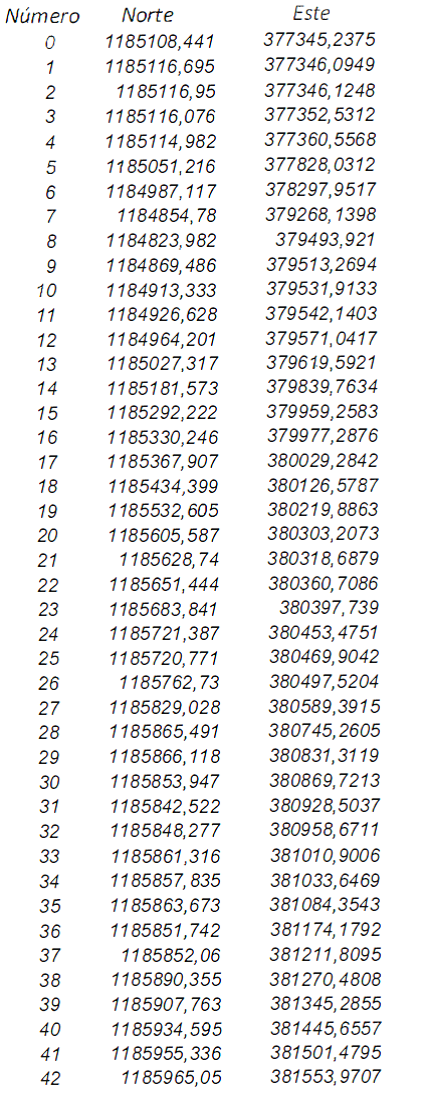 Dengo serán demarcados por las siguientes coordenadas: