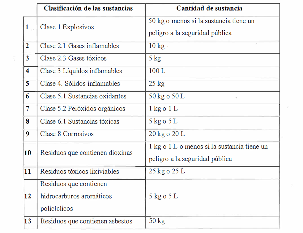 nombre y cantidad de las sustancias involucrada, consecuencias a la salud, a la
