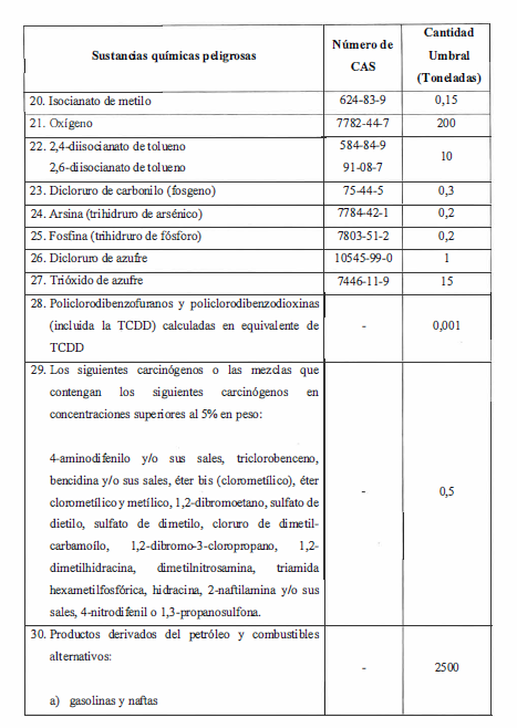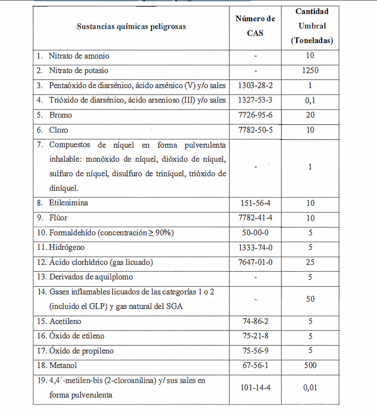Reglamento para la prevención, preparación y respuesta ante accidentes químicos