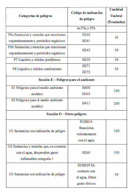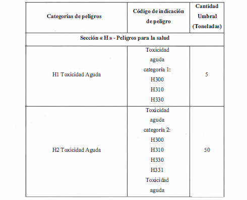 Información general relativa al tipo de riesgo de accidente grave, incluidos
