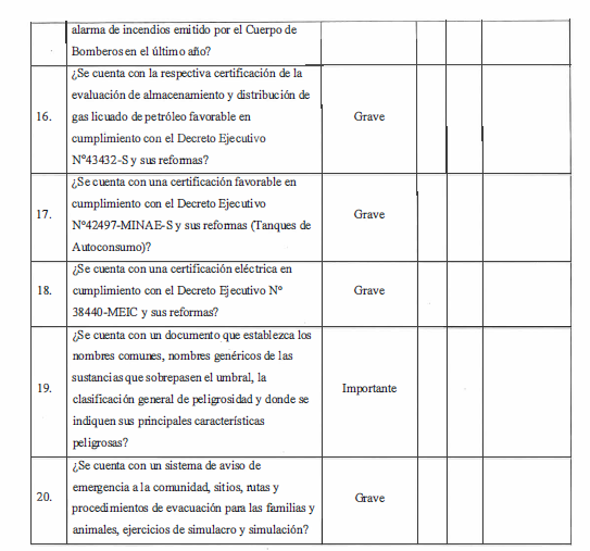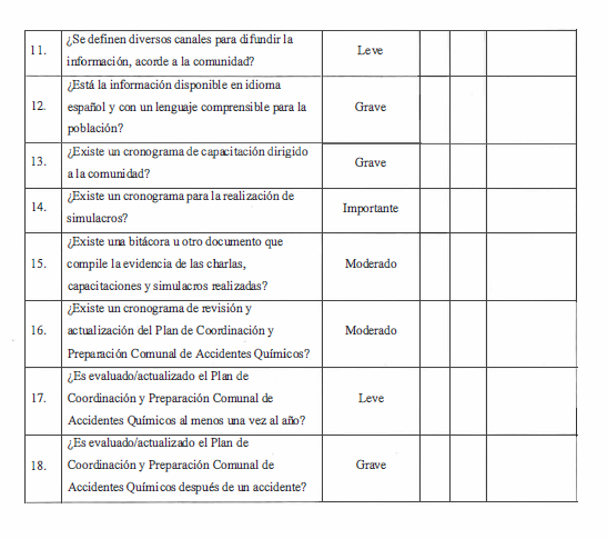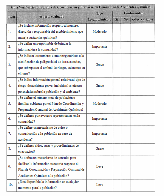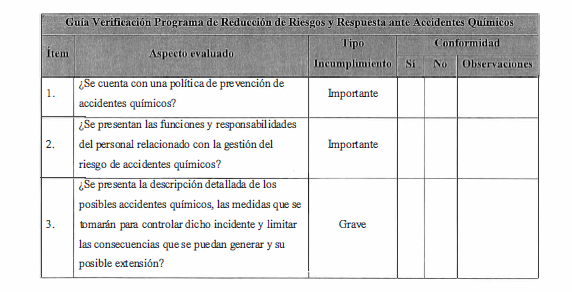 de Verificación de los elementos del Programa de Reducción de Riesgos y