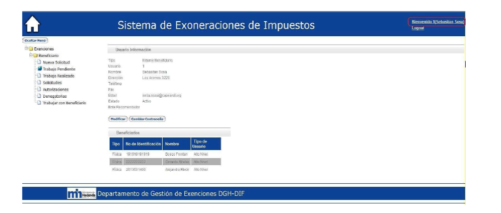 Una vez que el beneficiario haya ingresado a dicha
