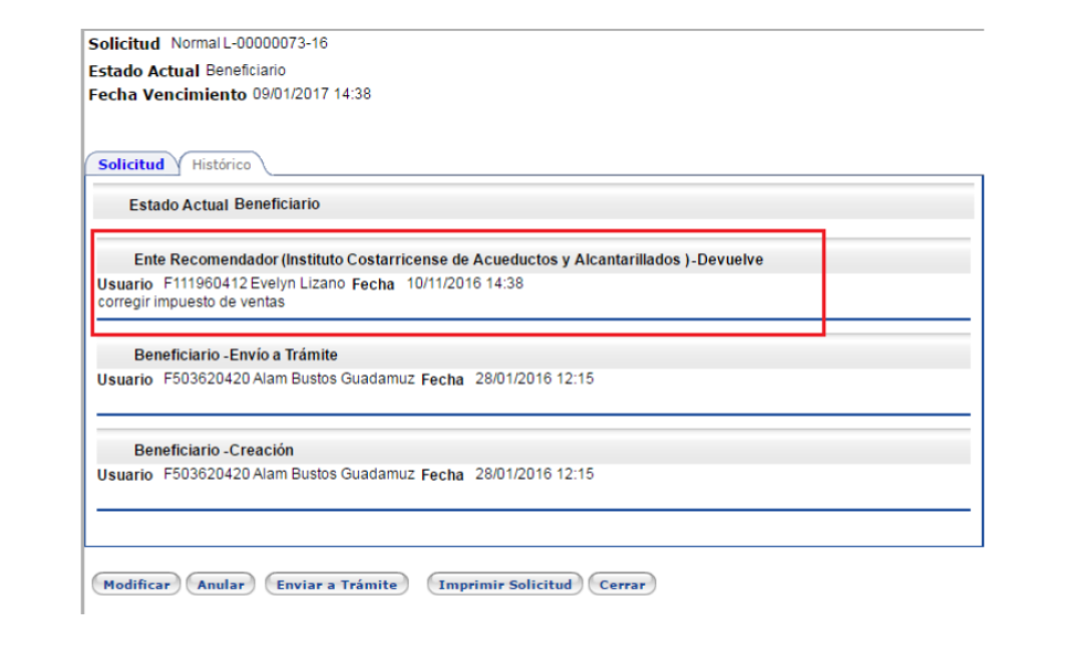 solicitud", el usuario puede modificar la solicitud cuantas veces sea