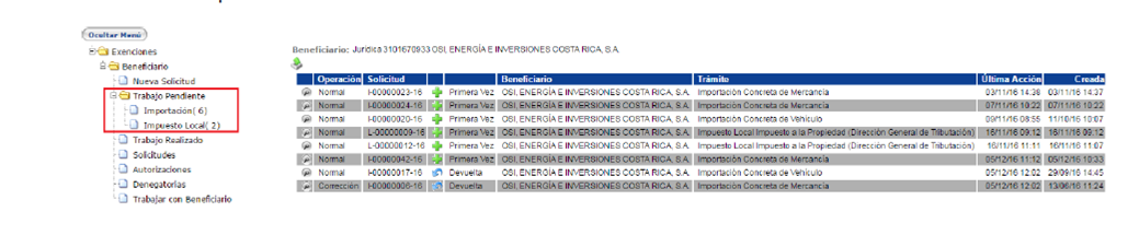 "Solicitudes", "Trabajo Pendiente" del menú principal (ver págs. 25 y 26).