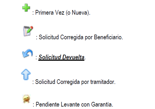 presenta un ejemplo de los distintos estados que puede tener una solicitud de