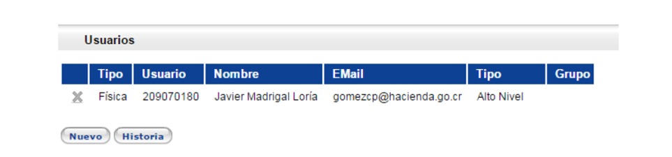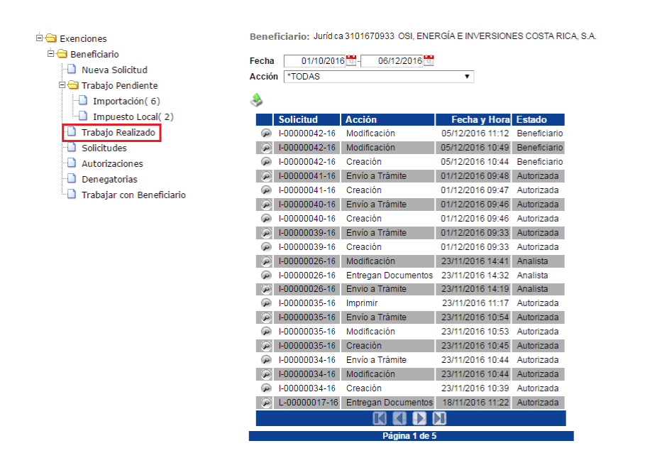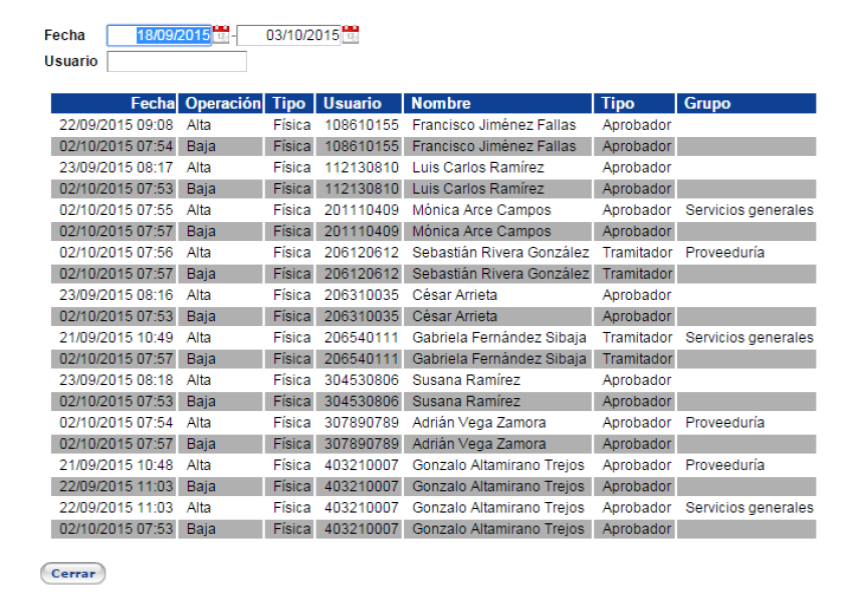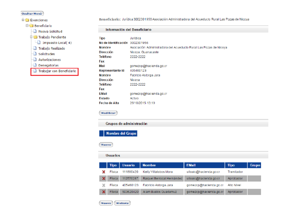 el historial de todos los usuarios del beneficiario. La consulta se puede realizar
