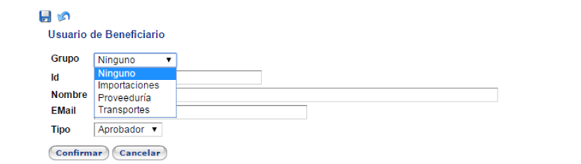 usuario a un grupo de administración específico deberá elegir el grupo el menú