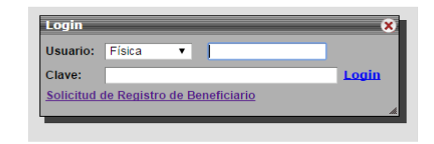b. Debe ingresar al link "Solicitud de registro de beneficiario"