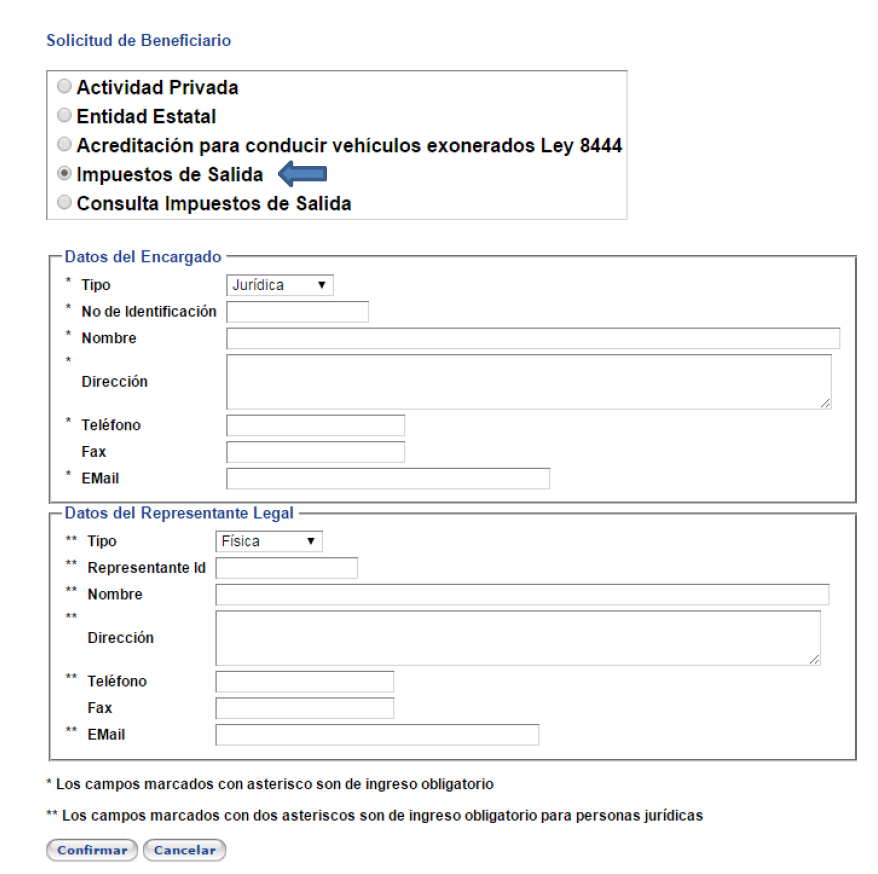 impuesto de salida, según incisos i y j del artículo 7 de la ley 8316, a saber
