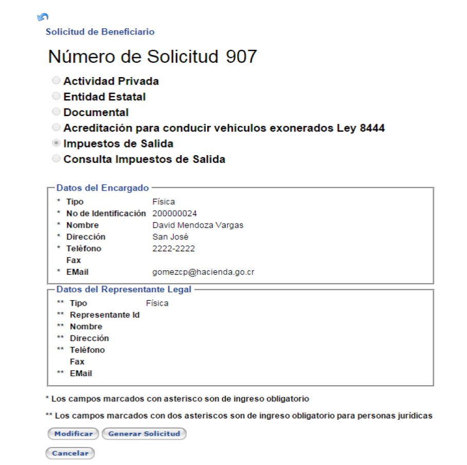 d. Cuando se hace clic a la opción "generar solicitud", le