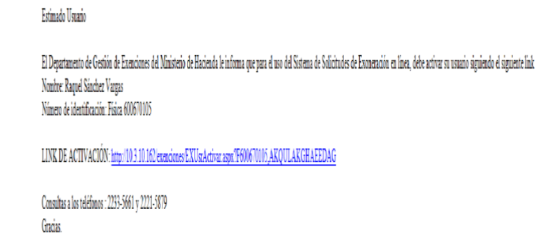 El sistema le enviará al interesado un link de activación, como se muestra en