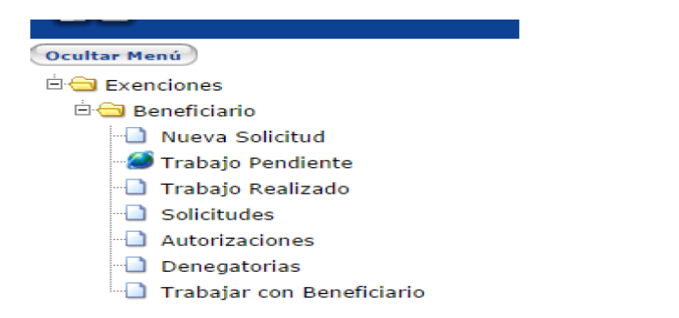 se encuentra debidamente habilitado para crear solicitudes de exención de los