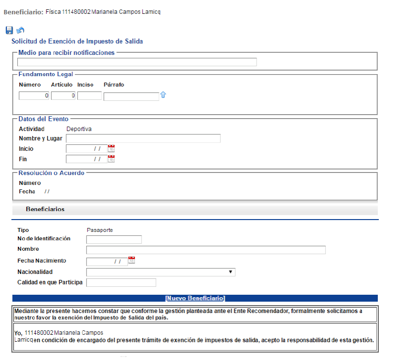 cuales se está gestionando la exención. Es importante tomar en cuenta que para