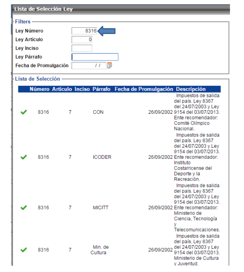 el espacio de la ley, se debe digitar: 8316 y al refrescarse la página,