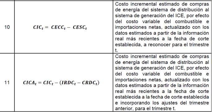 la importación de energía eléctrica del MER; o cualquier otro rubro de costo.