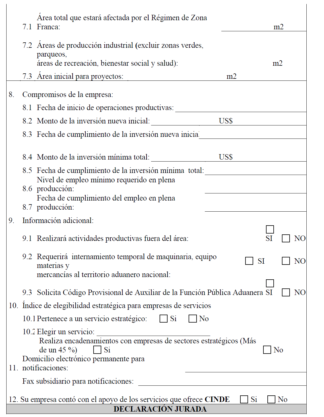 EN M2 PARA INSTALAR EMPRESAS DEL RÉGIMEN (*) |