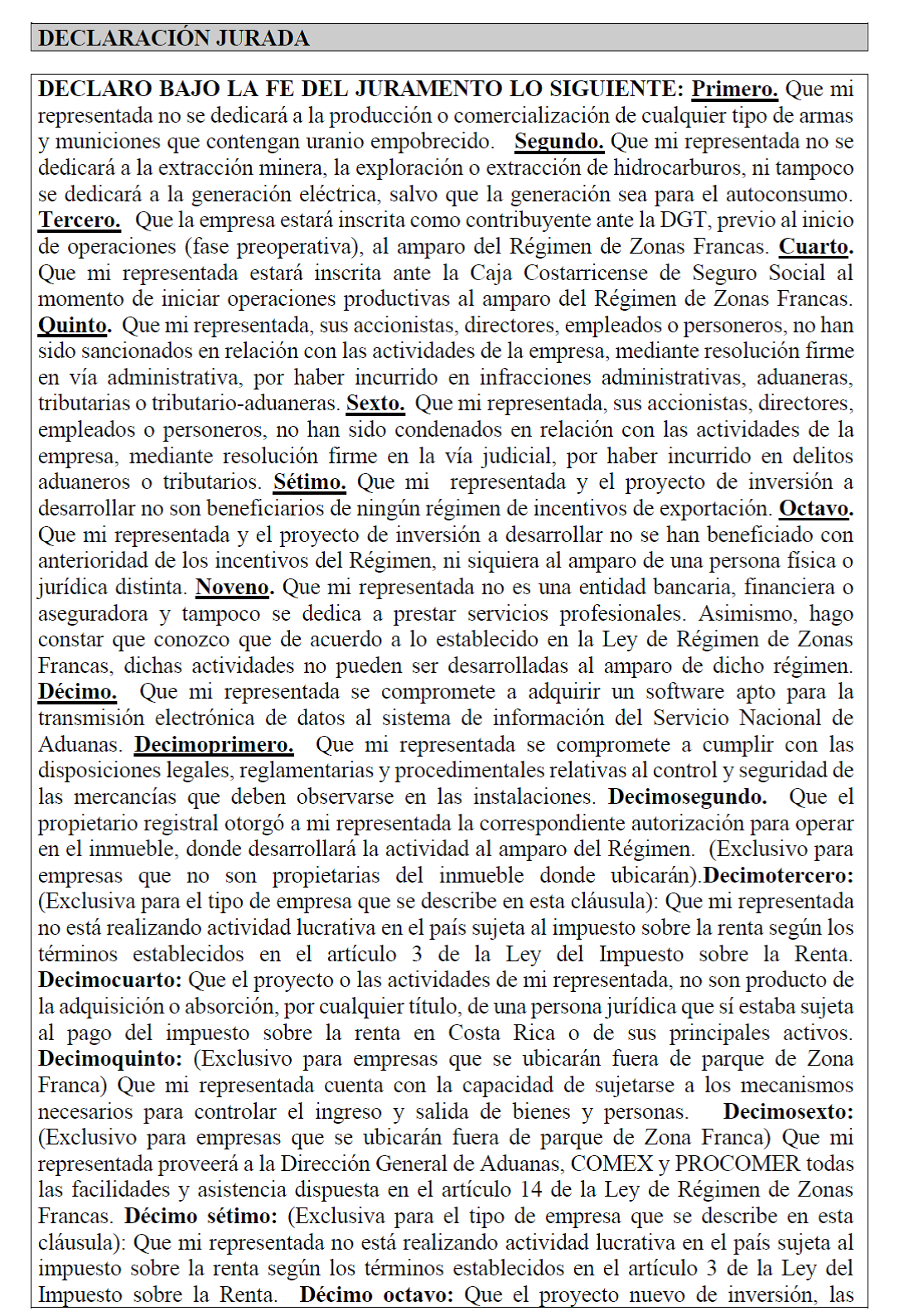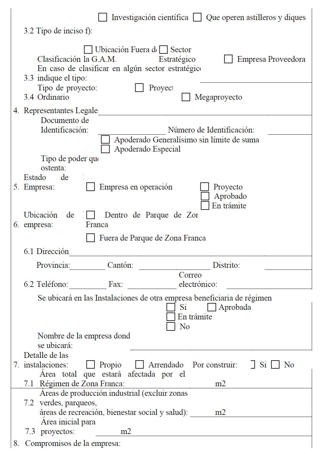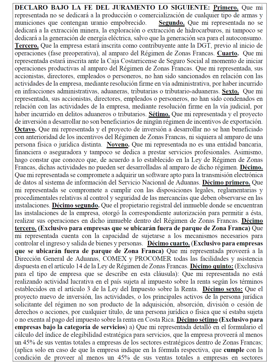 solicita acoger a los beneficios del Régimen de Zonas Francas se clasifique en alguna