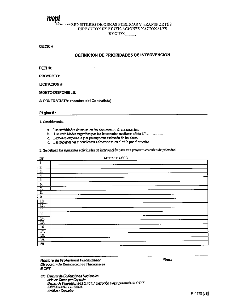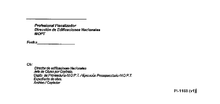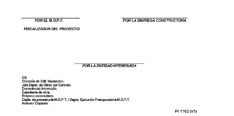 ejecutadas. Una vez cotejado esto, determina y comunica al contratista, por medio de nota, la fecha de recepción (Provisional y o final) de la obra. Recibe formalmente la obra (Provisiona l y o final), utilizando para ello el formulario "Pl-1163 Acta