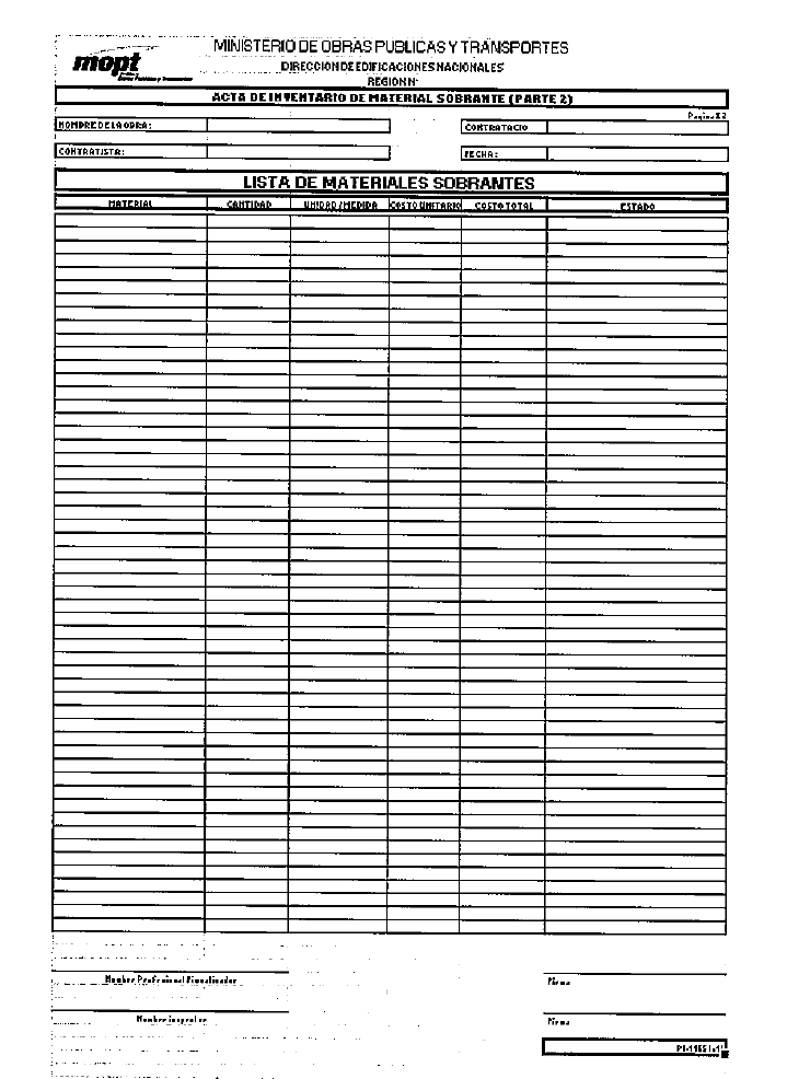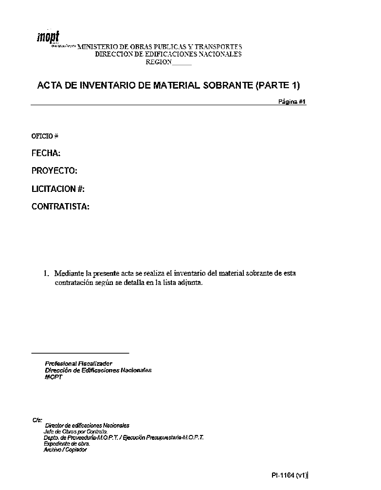 de inventario de material sobrante (parte 1)" y "Pl-1165 (vl) Acta de