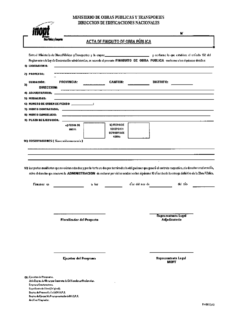el formulario "Pl-1166 Acta de Finiquito de obra pública". |